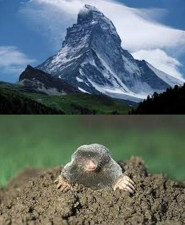 As I was praying for a word, I heard the words MOUNTAINS AND MOLEHILLS. I sense the Lord is saying that some of you are making mountains out of molehills and molehills out of mountains. I want to help you with your perspective says the Lord. It's all about how you perceive it to be. To an ant a molehill is a mountain and to a mountain a molehill is like an ant. Learn to view things through the lens of My spirit. Learn to lay aside your preconceived ideas.